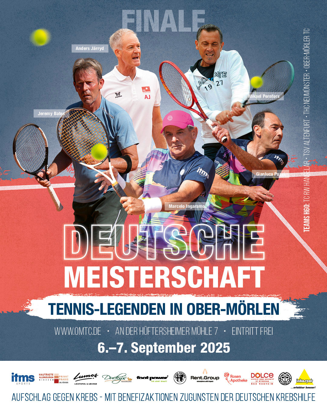 Ehemalige ATP-Stars, deutsche Spitzenspieler, Tennislegenden und internationales Flair kommen nach Ober-Mörlen, um beim Final Four der Deutschen Vereinsmeisterschaften der Herren 60 um den Titel zu kämpfen – ein Event der Extraklasse bei freiem Eintritt für alle Gäste.